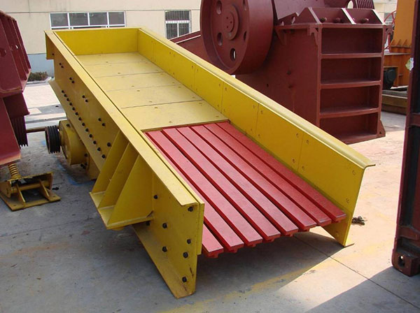振動給料機在生產(chǎn)流程中用于把塊狀、顆粒狀物料從貯料倉中均勻、定時、連續(xù)地送入受料裝置。在砂石生產(chǎn)線中可為破碎機械連續(xù)均勻地喂料,并對物料進(jìn)行粗篩分,廣泛應(yīng)用于冶金、煤礦、選礦、建材、化工、磨料等行業(yè)的破碎、篩分聯(lián)合設(shè)備中。