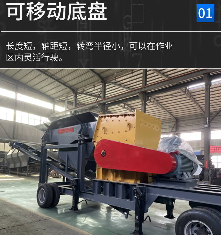 箱式破碎機、篩分系統、雜物分揀裝置和傳送機構等于一體,并配以行走機構。與固定式設備相比,移動站占地小、投入生產時間快、運輸成本小、規模效益更明顯。